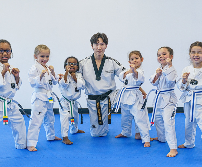 Character, first formed in childhood, has the greatest impact throughout life. In addition, motor nerves, which are made of cells formed at the same time, influence the motor ability of a lifetime. Master Min’s World Champion Taekwondo is ready to start teaching your 4–5-year-old child today! With our fun and high-energy Little Tigers program, your child will run, jump, kick, and punch their way to greater coordination, balance, flexibility and strength. Our experienced, professional instructors also make them develop everyday life skills like concentration, respect, discipline, confidence and listening skills through the art of Taekwondo.